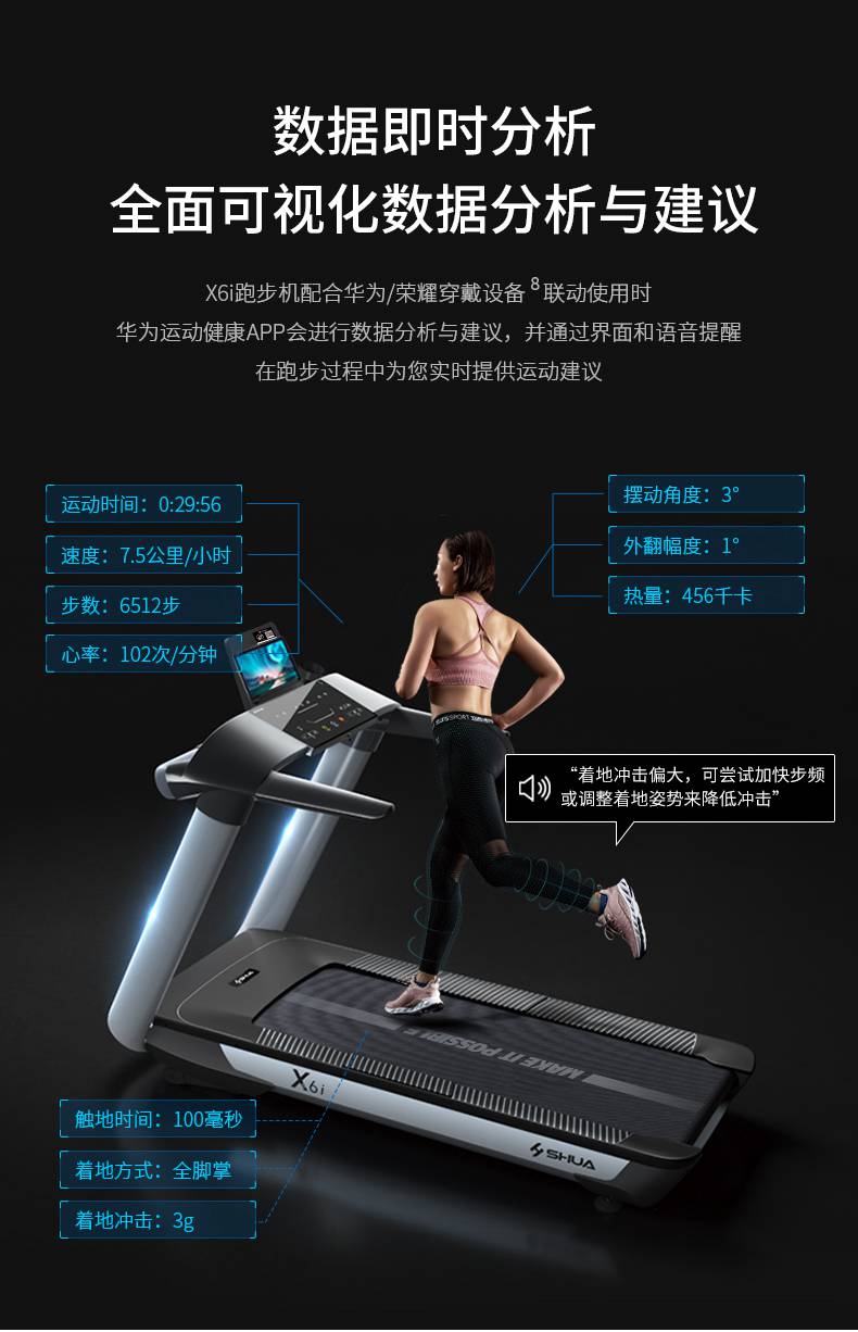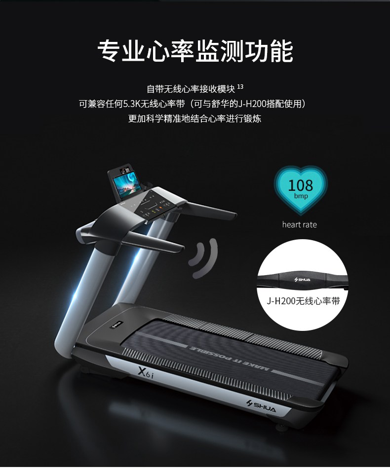 球王会跑步机-X6心率跑步机,可根据用户运动是实时心率,跑步机自动调节跑步速度、坡度等进行运动强度的调节,更科学;X6i华为版跑步机,可以通过连接华为运动健康APP,监测多种类型跑步数据。欢迎来电咨询~