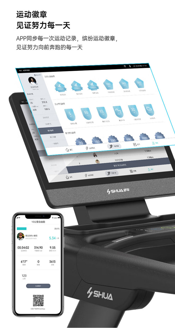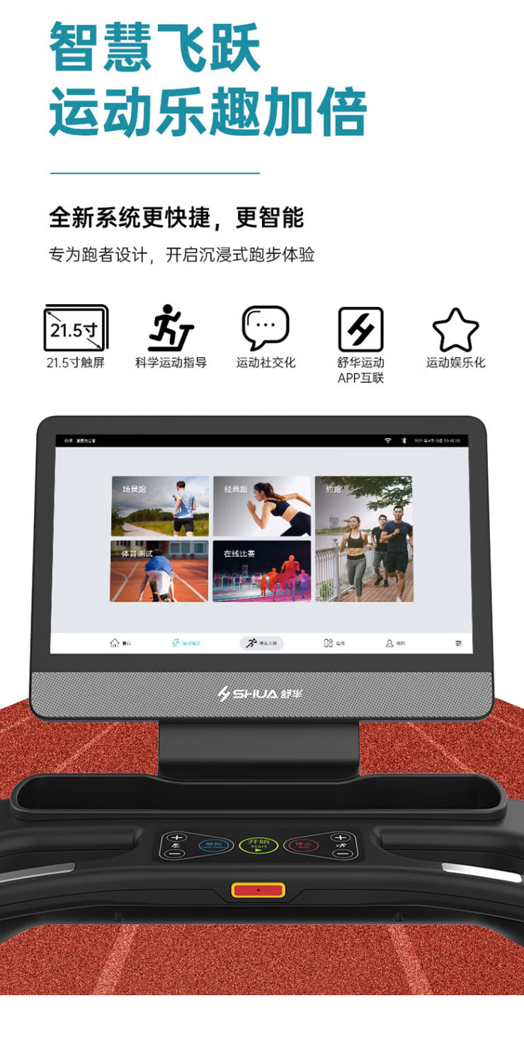 内置程序:搭载球王会跑步机系统3.0 :4种程式(5km 往返、间歇、登山、燃脂)+体育考试+倒计模式:时间/距离/ 卡路里+在线约跑+地图跑+球王会运动+应用软件