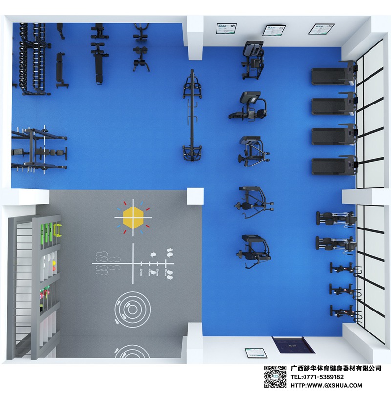 此方案要求面积小于208m²,适用于企事业单位、酒店会所、楼盘社区、学校、私教工作室等健身场所,能满足20-35人同时健身使用。(方案根据场地空间大小、预算、产品需求等进行配置仅为启发性参考)