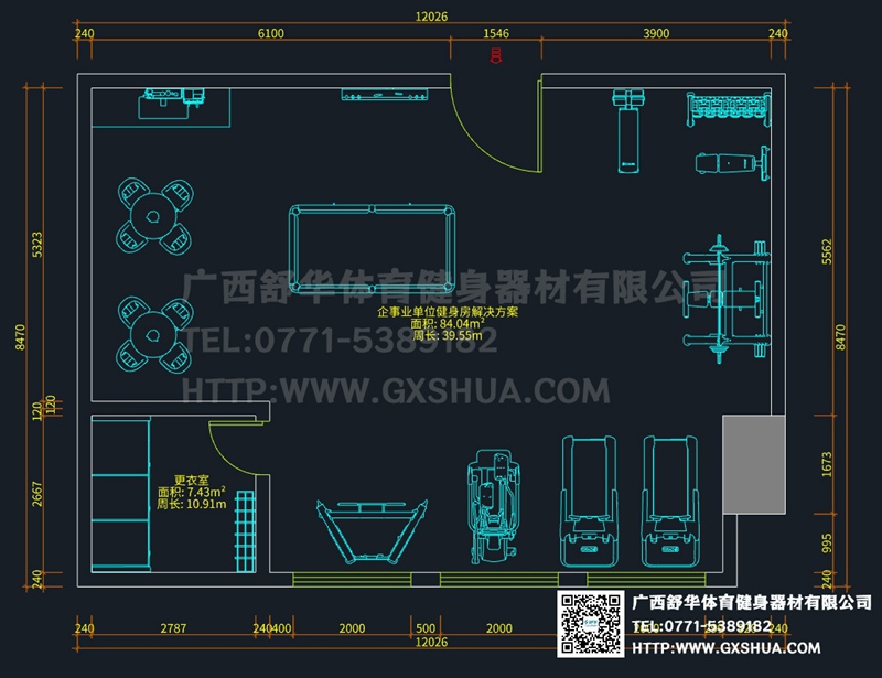 在现代企事业单位的运营管理中,员工的健康日益受到重视。一个规划合理、设施完备的 85m² 健身房,不仅能为员工提供锻炼和放松的场所,还能提升团队的活力与凝聚力,进而提高工作效率。以下是一套针对85m²企事业单位健身房的解决方案。