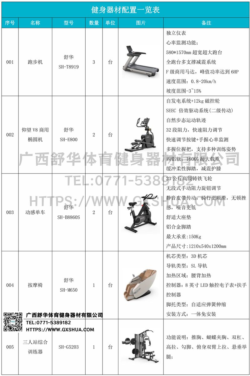 1.球王会V9跑步机SH-T8919*3台-F级商用马达-超强马达,AC 3.0HP 交流,峰值功率达到6HP,F级商用品质。速度范围达到0.8-20km/h;V9跑步机可实现跑台扬升功能,坡度范围-3~15%,满足客户不同的锻炼需求。