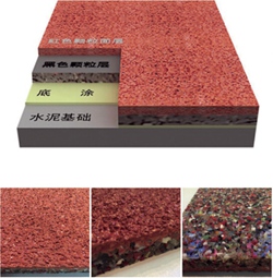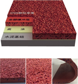 1、上层为PU颗粒或EPDM耐候性环保彩色颗粒,渗水的聚氨酯密封,下层采用机械施工缓冲底垫,符合比赛标准。