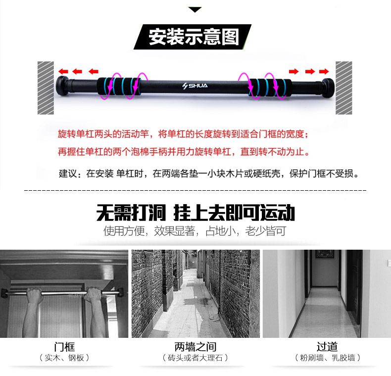 球王会 家用门上单杠 室内多功能引体向上器材单杆 门上单杠