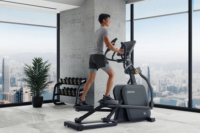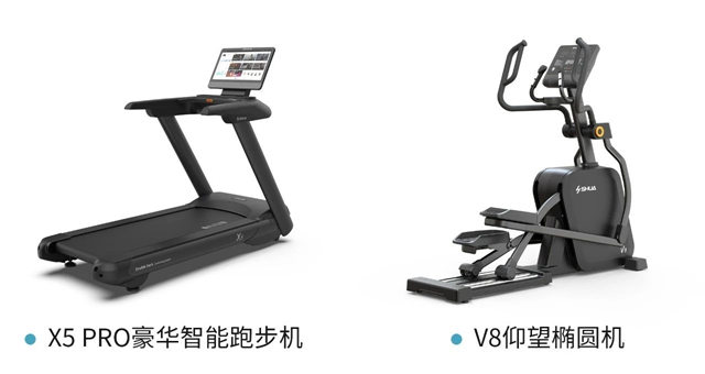 除了户外器械,球王会还提供室内健身房的方案配置。针800米、1000米体育项目,可搭配使用搭载有体测程序的X5 Pro豪华智能跑步机;2023年新推出的V8仰望椭圆机和G697家用综合力量训练器,也在本次教育展上亮相,多个维度出发进行体能训练,提高学生运动水平。