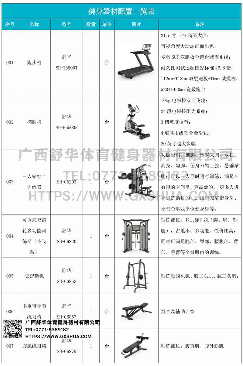 小飞鸟(1台)、史密斯机1台)多重可调节练习椅1台)、腹肌板(1台)、10付哑铃套组(1套)、哑铃凳(1台),可以实现对不同肌肉群的针对性训练,满足肌肉训练需求,全方位激活身体机能。