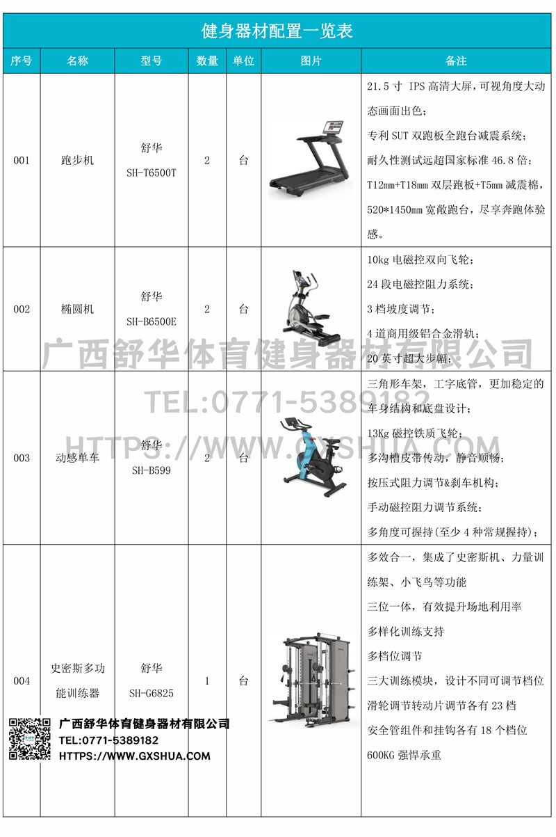 1.球王会X5 Pro跑步机SH-T6500T*2台-采用高性能电机,提供稳定动力,支持长时间高强度运行,适合长时间有氧训练,跑台宽敞,提供舒适跑步空间,减少运动中的束缚感,适合不同体型用户。配备先进减震系统,有效缓解跑步对关节的冲击,降低运动损伤风险,内置智能控制系统,支持多种预设程序和个性化训练计划,用户可根据需求调整速度和坡度,满足多样化训练。