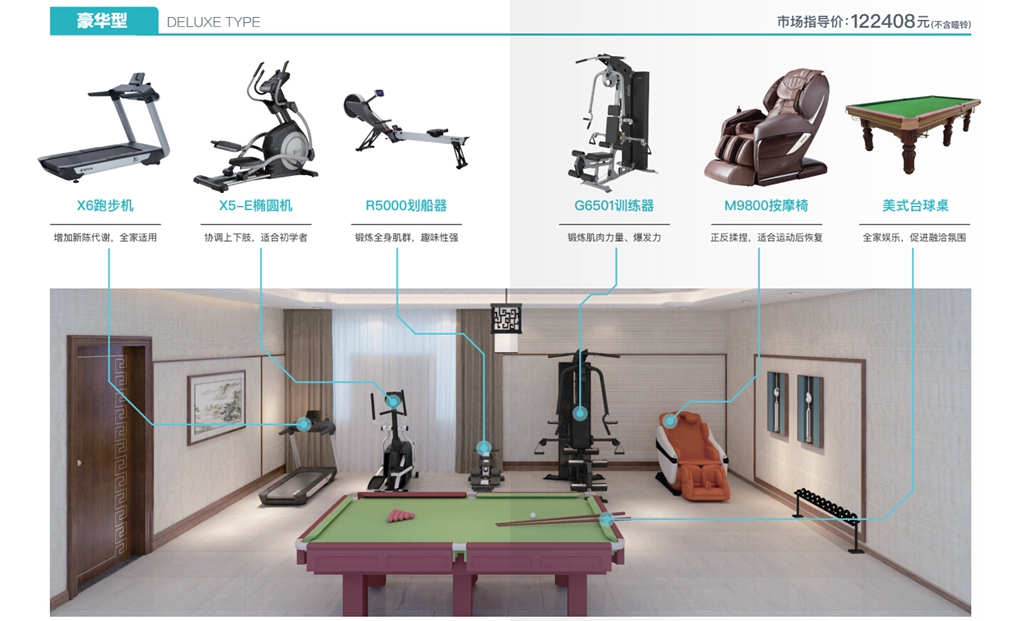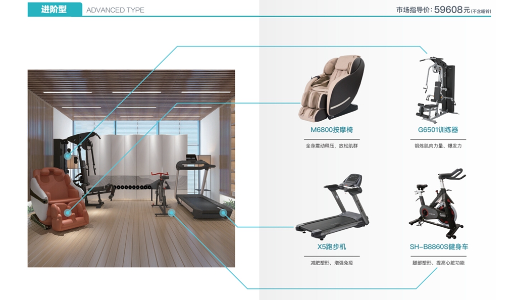 球王会可为您的家庭打造一个私家健身房,提供全面的有氧训练、力量训练、功能性与柔韧性训练和理疗按摩器材,以及运动健康管理服务,让简单运动融入生活,帮助您的家庭实现健康目标。